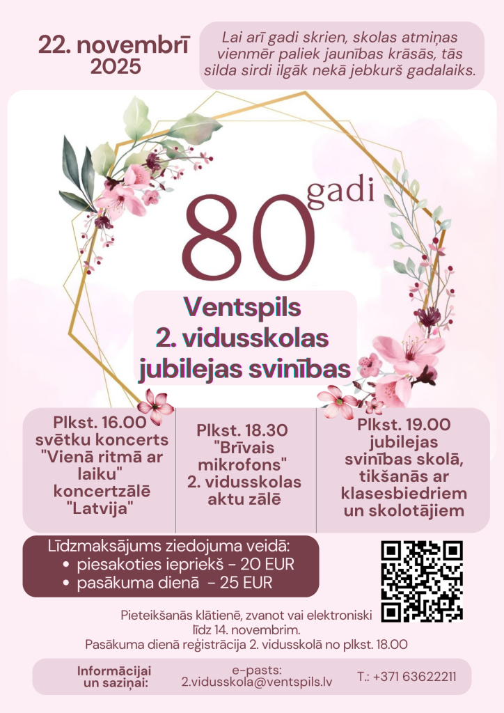 Absolventiem reģistrācija klātienē darba dienās no plkst.12.00.-15.00 skolas bibliotēkā vai elektroniski https://ieej.lv/Registracija_2vsk līdz 14.11. 2025.