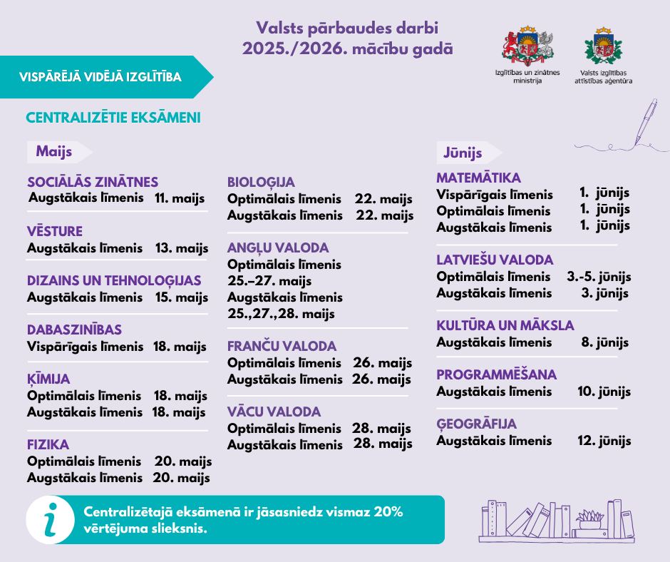 Visa informācija: Apstiprināts 2025./2026. mācību gada valsts pārbaudes darbu grafiks un izmaiņas centralizēto eksāmenu norisē | Izglītības un zinātnes ministrija